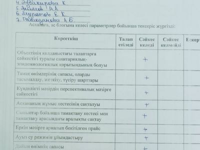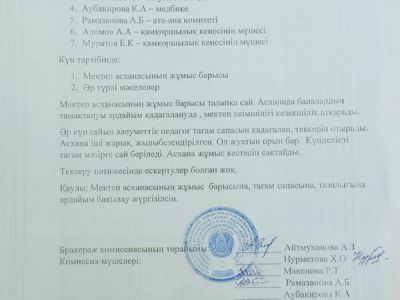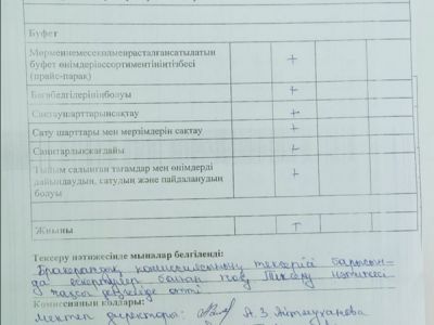 Мектеп асханасының бракераж комиссиясының тамақтану бойынша тексеру Хаттамасы